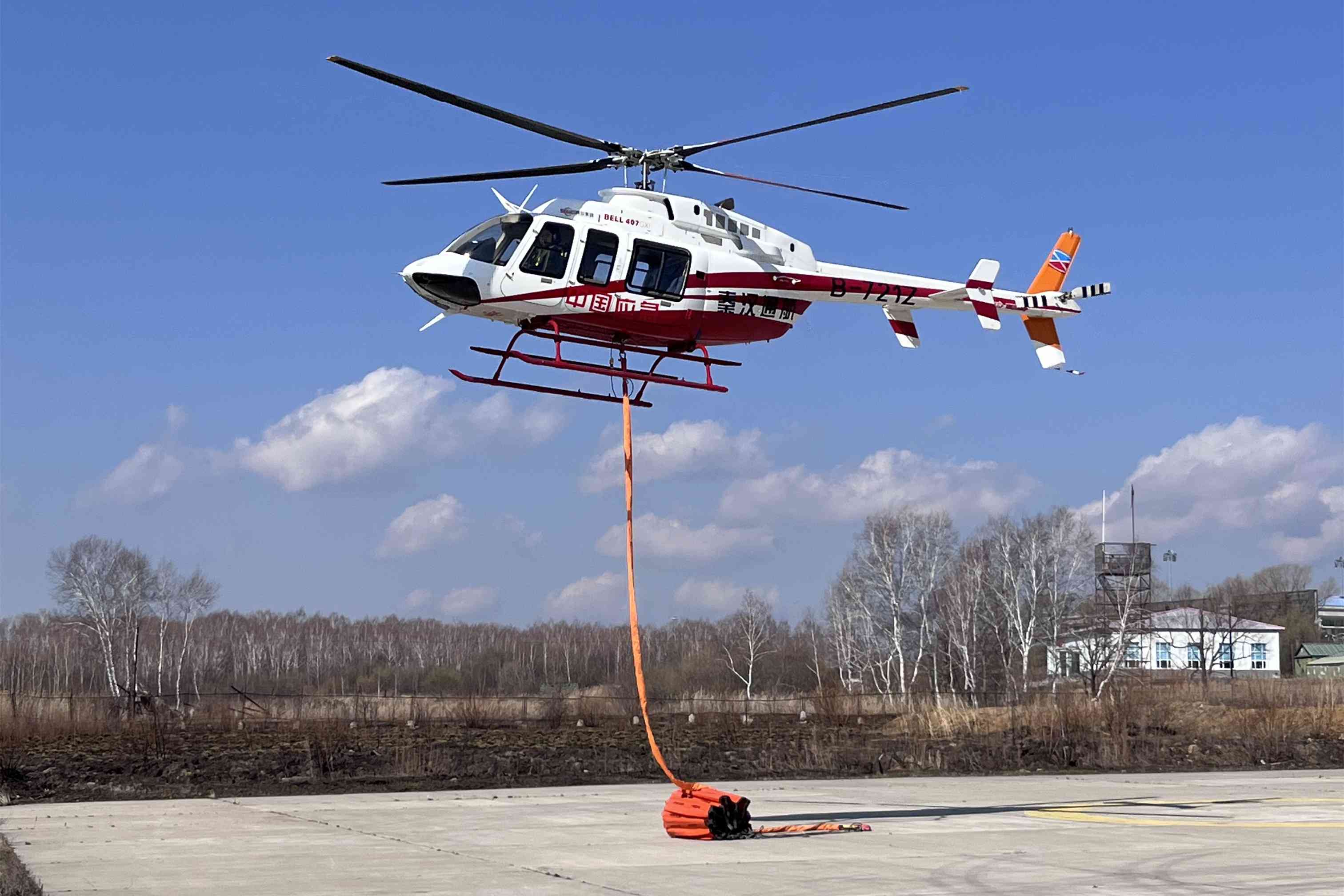 4月尾,,,,,,,,黑河航空护林站组织森林草原防火演练运动,,,,,,,,为抵达预期效果。。。。。。。“直升机需要将注满水的吊桶平稳安排在地面并坚持悬停状态,,,,,,,,地面职员再将染料加进吊桶,,,,,,,,这需要逍遥之间优异的协同配合。。。。。。。”黑河作业队机务职员郝佳佳说道。。。。。。。